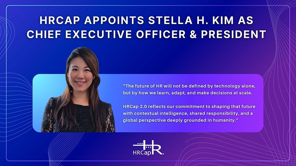 Under Stella Kim’s new leadership, HRCap will accelerate our evolution into a Global HR Intelligence Partner, combining AI-driven insight with deep human expertise to help organizations make better decisions, move faster with confidence, and build systems that endure.
